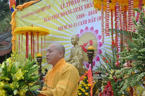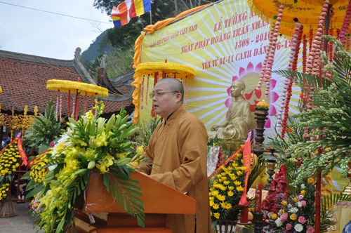 Tại buổi lễ TT. Thích Thanh Quyết - Trưởng ban Trị sự Tỉnh hội Phật giáo Quảng Ninh đọc diễn văn khai mạc, ca ngợi Đức vua Trần Nhân Tông - Người là đại diện tiêu biểu cho tình thần hoà hợp giữa đạo và đời, đã phát huy tính khế lý khế cơ của Đạo Phật để xây dựng một xã hội thái bình, giữ gìn Phật pháp xương minh, khuyến khích những việc làm lợi đạo ích đời.Đặc biệt là sự ra đời của dòng Thiền Trúc Lâm do Phật hoàng Trần Nhân Tông sáng lập khẳng định Phật giáo luôn luôn đồng hành cùng Dân tộc trong suốt chiều dài lịch sử hơn 2000 năm qua”.