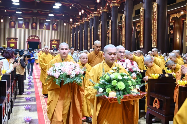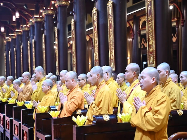 Được biết, trong thời gian từ 22 giờ đến 24 giờ cùng ngày đã diễn ra lễ cúng Phật, thỉnh Tổ tại chùa Hoa Yên, kinh hành nhiễu tháp Phật hoàng tại vườn tháp tổ.