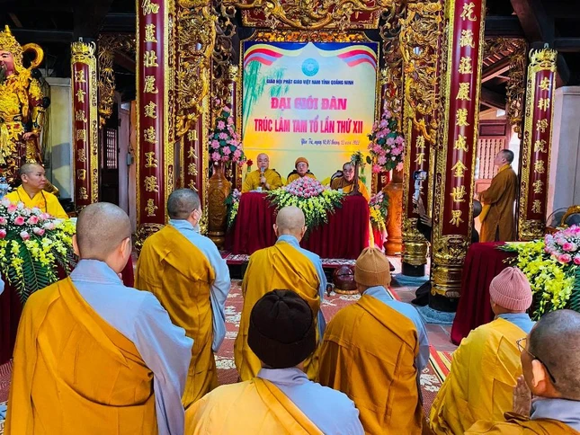 GNO - Sáng nay, 3-12, tại Trụ sở Ban Trị sự GHPGVN tỉnh Quảng Ninh - chùa Trình Yên Tử, Đại giới đàn Trúc Lâm Tam Tổ lần thứ XII chính thức khai mạc và tấn đàn truyền giới cho giới tử.
