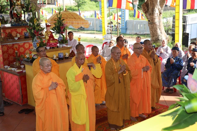 Chứng minh và tham dự buổi lễ có sự hiện diện của Trưởng lão Hòa thượng Thích Giác Quang, trụ trì tổ đình Bảo Lâm (Huế); Hòa thượng Thích Chơn Tế, trụ trì tổ đình Tường Vân (Huế); Hòa thượng Thích Đức Thanh, trụ trì tổ đình Báo Quốc (Huế); Hòa thượng Thích Thiện Tấn, Trưởng ban Trị sự GHPGVN tỉnh Quảng Trị; Hòa thượng Thích Chánh Huyền, Chứng minh Ban Trị sự GHPGVN tỉnh Quảng Trị; Hòa thượng Thích Quán Chơn, trụ trì chùa Quy Thiện, Từ Ân (Huế); Hòa thượng Thích Thanh Đàm, trụ trì tổ đình Thiền Tôn (Huế); Hòa thượng Thích Nguyên Giác, trụ trì Quảng Hương Già Lam (TP.HCM), Hòa thượng Thích Giác Đạo, trụ trì tổ đình Kim Tiên (Huế), cùng chư tôn đức làng Trung Kiên, tỉnh Quảng Trị và đông đảo Phật tử...