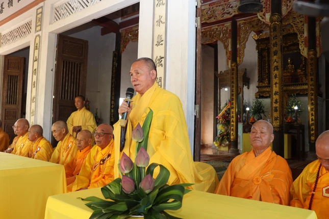 Hòa thượng Thích Nguyên Giác - trụ trì Quảng Hương Già Lam phát biểu |