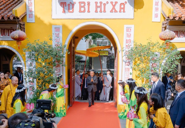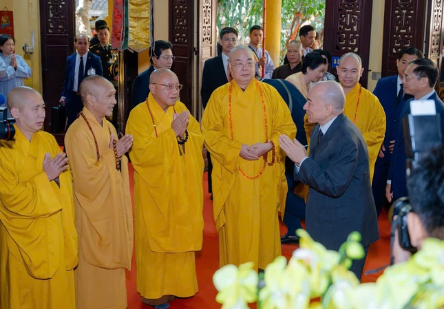 Trưởng lão Hòa thượng thay mặt Tăng Ni, Phật tử Việt Nam chúc Quốc vương Norodom Sihamoni thân tâm an khang, trí tuệ anh minh, trị vì đất nước Campuchia và chăm lo cho nhân dân Campuchia phồn vinh, thịnh vượng; chúc chuyến thăm hữu nghị Việt Nam lần này của Quốc vương Norodom Sihamoni thành công rực rỡ; chúc quan hệ láng giềng tốt đẹp, hữu nghị truyền thống, hợp tác toàn diện, bền vững lâu dài giữa Việt Nam - Campuchia ngày càng tốt đẹp, mãi mãi bền vững.