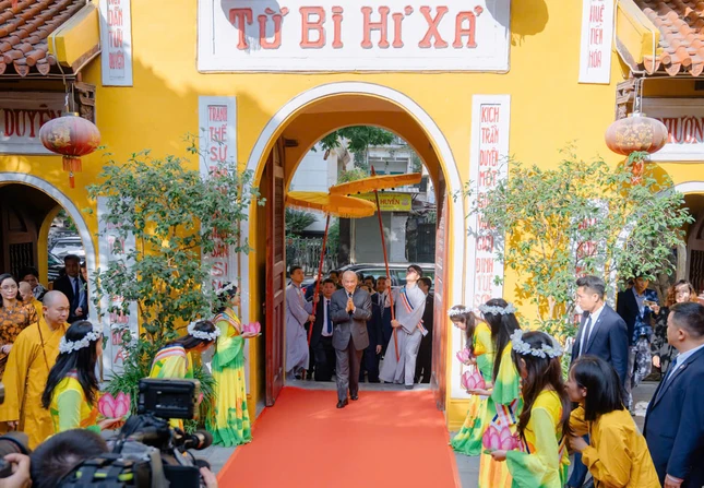 Hình ảnh Quốc vương Norodom Sihamoni và phái đoàn thăm chư tôn đức tại Trụ sở T.Ư GHPGVN - chùa Quán Sứ, vào sáng nay, 29-11: