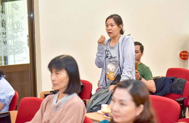 | Chư tôn đức niệm Phật cầu gia bị trước buổi họp và dành một phút tưởng niệm Thượng tọa Thích Quảng Tánh, một cộng sự gắn bó 20 năm tại báo, đã viên tịch vào ngày 2-9-2025 |