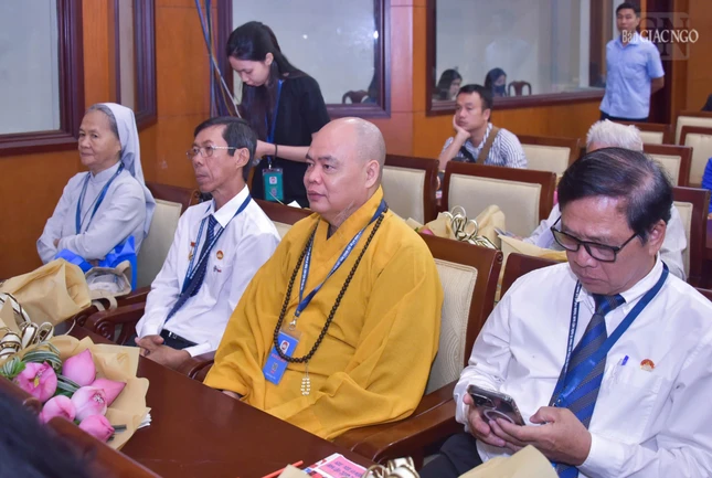 Đại biểu Đại hội cũng xem những ghi hình các ý kiến, đề xuất, kiến nghị, đóng góp của đại diện các tổ chức chính trị xã hội, các tầng lớp nhân dân, đại diện tôn giáo, dân tộc... qua phim "MTTQVN TP.HCM - nơi trao gởi niềm tin".