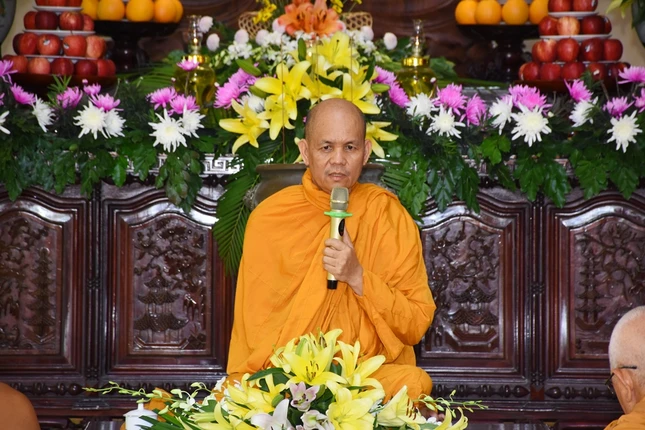 Tại đây, Thượng tọa đã nêu ý nghĩa của quy y Tam bảo và thọ trì 5 giới. "Quy y Tam bảo là con đường dẫn đến con đường giải thoát, người thọ trì 5 giới và giữ giới đó là sự giác ngộ của tự thân, không những đem lại sự hạnh phúc tự thân mà còn là góp phần xây dựng cho xã hội ngày càng tốt đẹp.", Thượng tọa nhấn mạnh.
