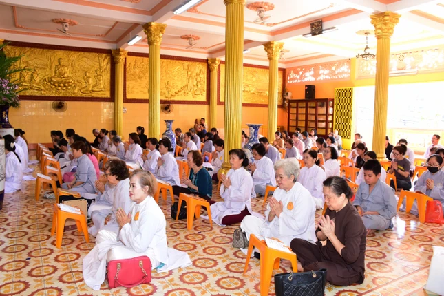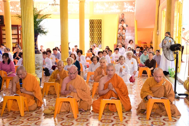 Dịp này, Thượng tọa Giác Nhuận, trị sự phó Giáo đoàn VI đã truyền giới cho các thiện nam, tín nữ phát tâm quy y Tam bảo.