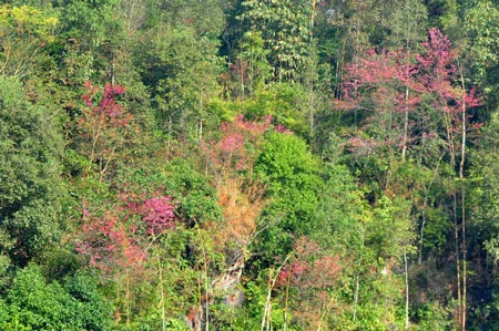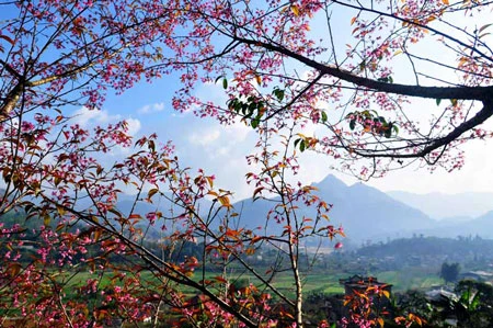 Năm nay bà con các dân tộc vùng cao Bắc Hà (tỉnh Lào Cai) và đông đảo khách du lịch tới thăm địa phương nơi này bất ngờ được ngắm hoa đào rừng nở thắm núi quê hương sớm hơn mọi năm gần hai tháng.