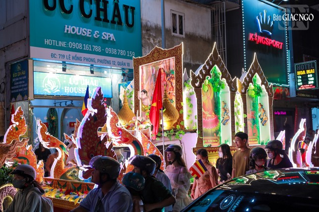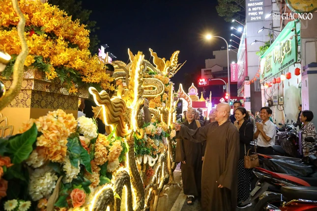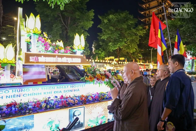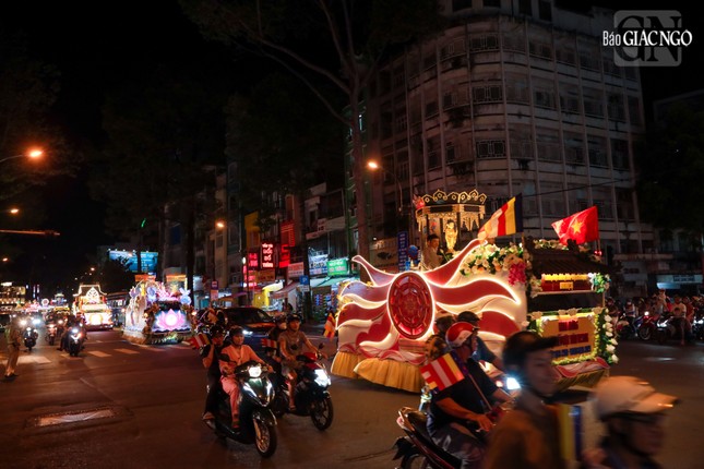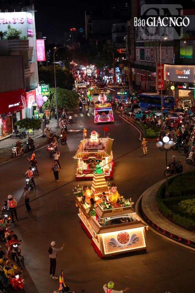 Trước giờ xuất phát, Hòa thượng Thích Lệ Trang, Phó Chủ tịch Hội đồng Trị sự, Trưởng ban Trị sự Phật giáo TP.HCM cùng chư tôn đức Thường trực Ban Trị sự, Ban Tổ chức đã đi thăm, kiểm tra đội hình xe hoa tập kết tại khu vực đường Lê Hồng Phong, ngay cạnh khuôn viên Việt Nam Quốc Tự. Đúng 7 giờ, đoàn xe khởi hành, đi qua các cung đường trung tâm trong niềm hân hoan của đồng bào Phật tử và người dân thành phố.