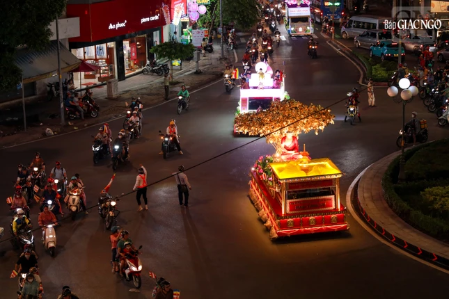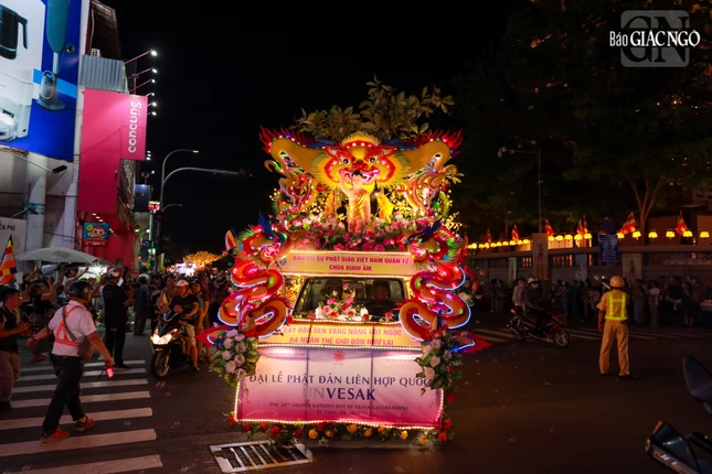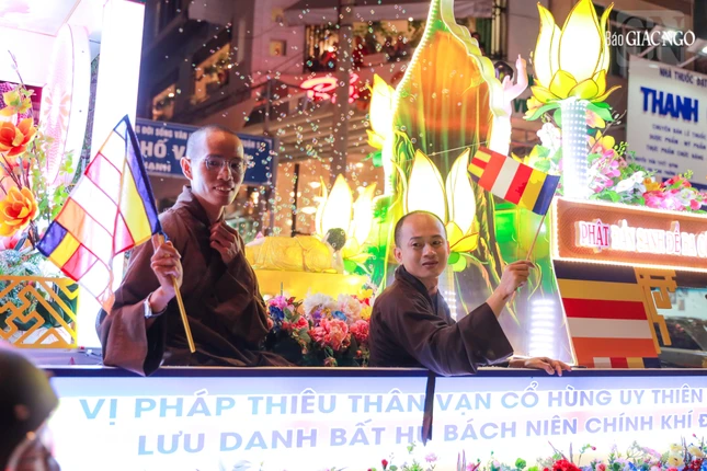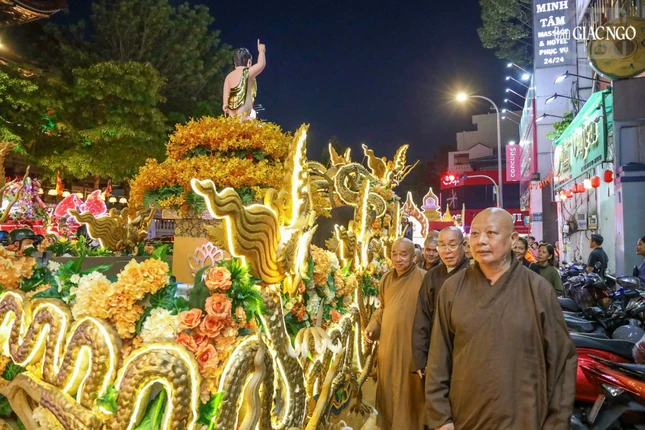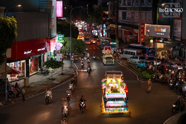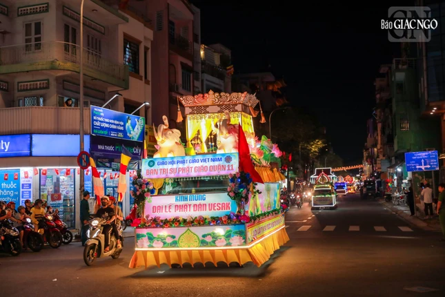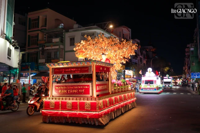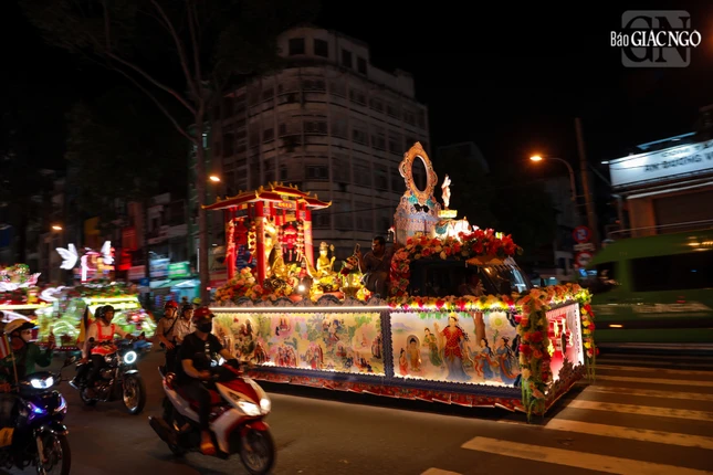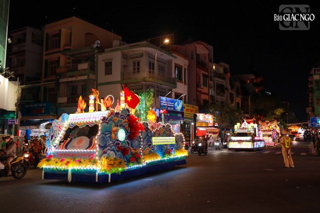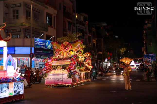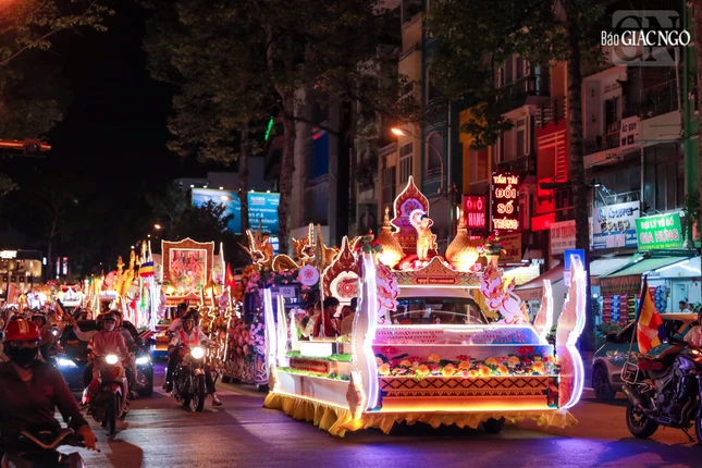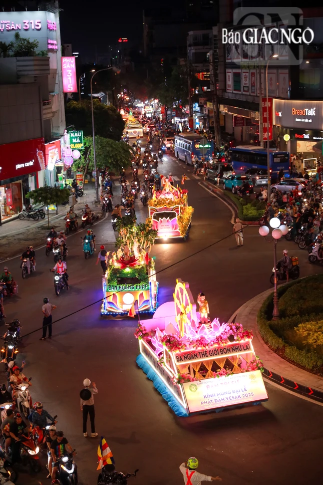 GNO - Tối nay, 13-4-Ất Tỵ (10-5-2025), 41 chiếc xe hoa kính mừng Phật đản Phật lịch 2569 của các Ban chuyên môn trực thuộc Ban Trị sự GHPGVN TP.HCM, Ban Trị sự 21 quận huyện và TP.Thủ Đức đã diễu hành quanh các cung đường của thành phố.