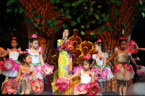 Ca sĩ Mỹ Linh hát bài “Mẹ hiền Quán Thế Âm” với phần minh họa của các em nhỏ