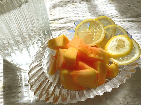 Đu đủ chín nửa quả Chanh tươi nửa quả, chọn loại chanh vàng để vỏ đỡ bị đắng Mật ong Nước lọc