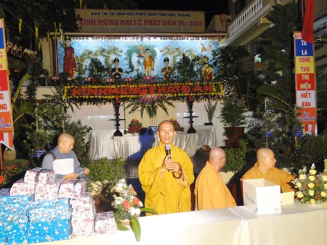 Trước đó, vào lúc 14g cùng ngày; UBMTTQ - Phòng Nội vụ thành phố Sóc Trăng đã cử đoàn đến trụ sở Ban Trị sự thăm hỏi, tặng quà và chúc Đại lễ Phật đản PL: 2554 trên địa bàn thành phố Sóc Trăng thành công tốt đẹp.