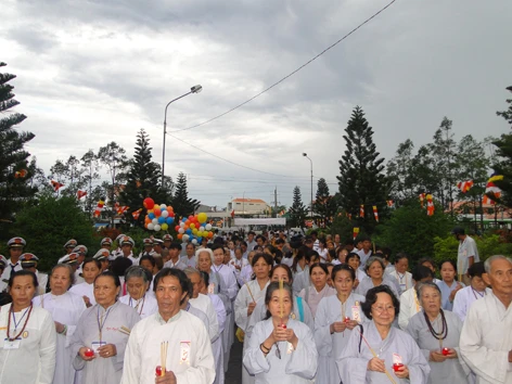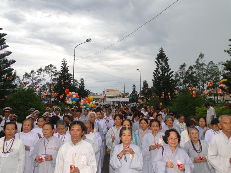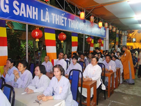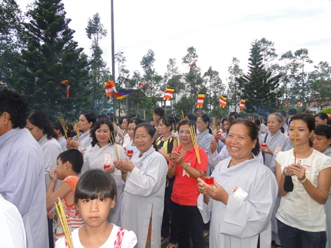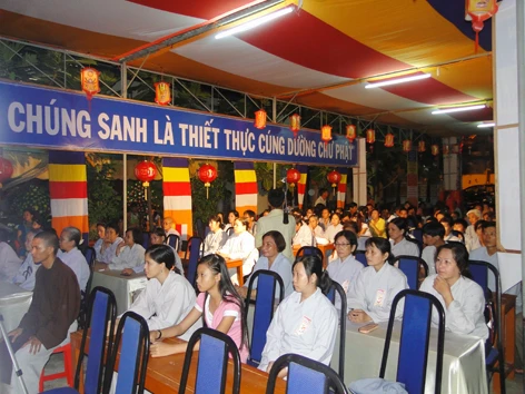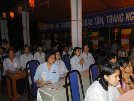 Sau khi viếng nghĩa trang xong, Phật tử vân tập về lễ đài tập trung của Tỉnh hội tại chùa Khánh Sơn Tp Sóc Trăng để tham gia hội thi giáo lý và chương trình bốc thăm trúng thưởng.