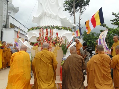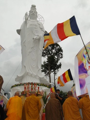 Qua hơn 3 tháng khởi công xây dựng, với sự tài trợ của Đại đức Thích Thiện Minh và bổn đạo Phật tử chùa Khánh Sơn, Tượng đài Bồ tát Quán Thế Âm cao 15 mét đã hoàn thành viên mãn với tổng kinh phí khoảng 450 triệu đồng.
