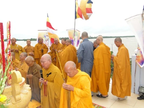 (GNO-Sóc Trăng): Ngày 23-3, Đại đức Thích Trung Đa - trụ trì chùa Hiệp Châu, xã Nhơn Mỹ, huyện Kế Sách, tỉnh Sóc Trăng đã trọng thể làm lễ an vị Kim thân Bồ tát Quán Thế Âm lộ thiên nhân ngày vía của Ngài và cũng chính là ngày kỷ niệm 4 năm ngày viên tịch của Ni sư Thích nữ Diệu Thiền - tiền nhiệm trụ trì chùa Hiệp Châu.