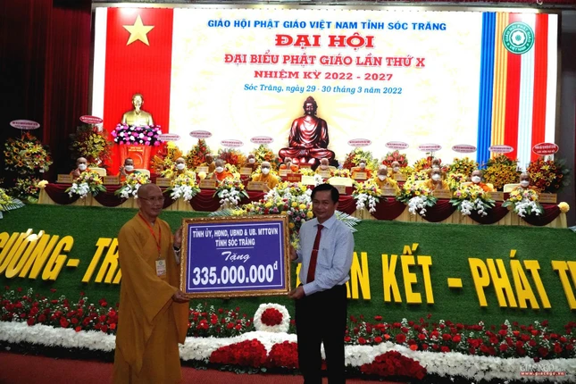 Nhiều lẵng hoa và quà đã được chư tôn đức và lãnh đạo các cấp chính quyền gởi đến chúc mừng đại hội cũng như trao tặng chúc mừng tân Ban Trị sự Phật giáo tỉnh Sóc Trăng nhiệm kỳ mới.