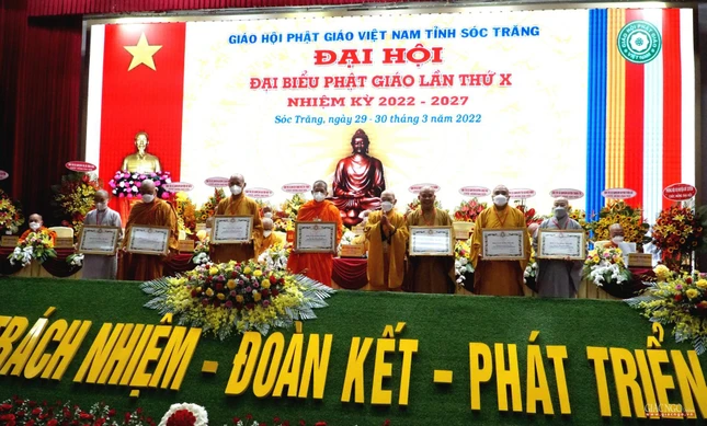 Ghi nhận đóng góp của chư tôn đức nhiệm kỳ qua, GHPGVN tặng Bằng tuyên dương công đức đến Ban Trị sự GHPGVN tỉnh; Ủy ban Nhân dân tỉnh và Ủy ban MTTQVN tỉnh tặng Bằng khen đến Ban Trị sự tỉnh và cá nhân.