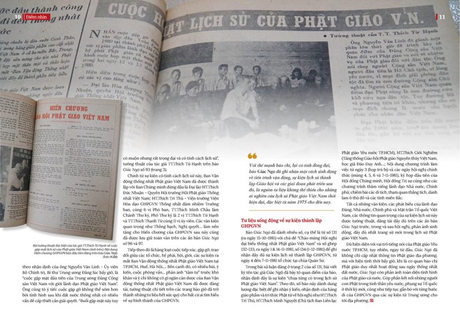 Khi cần tìm hiểu về hoạt động, sinh khí của Phật giáo Việt Nam sau ngày đất nước thống nhất, có thể nói không có một tư liệu nào thể hiện sinh động bằng nhiều câu chuyện, thông tin trên các ấn phẩm mà “người thư ký thời đại” Giác Ngộ đã lưu giữ, trong đó có sự kiện vận động, thành lập GHPGVN. Đây là nguồn thông tin đặc biệt đã bước đầu được khai thác qua loạt tư liệu - hồ sơ mà Báo Giác Ngộ thực hiện nhân kỷ niệm 35 năm thành lập Giáo hội (2016), nhiều trang thông tin Phật giáo dẫn lại.