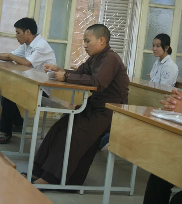 "Vì kiến thức chưa được nhiều nên tôi không dám nghỉ buổi ôn nào, tiếc lắm. Ước vọng của tôi là học thêm bằng đại học nữa vì càng học tôi càng cảm thấy mình thanh thản hơn" - sư thầy Thủy tâm sự.