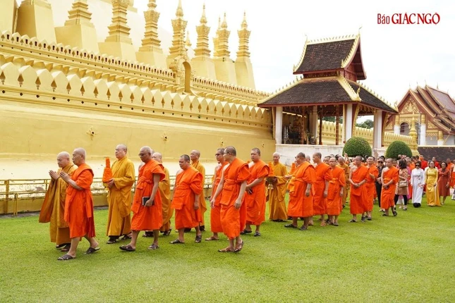 Cùng dự còn có chư tôn đức Tăng hai nước, đại diện Đại sứ quán Việt Nam tại Lào và đại diện Trung ương Mặt trận Lào xây dựng đất nước.