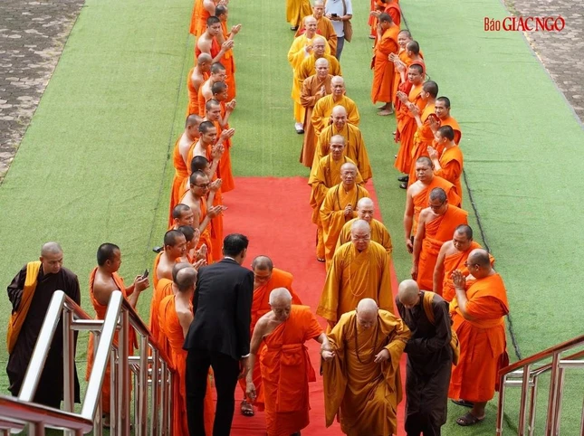 Đoàn các vị giáo phẩm lãnh đạo Trung ương GHPGVN - Ảnh: Bảo Trinh |