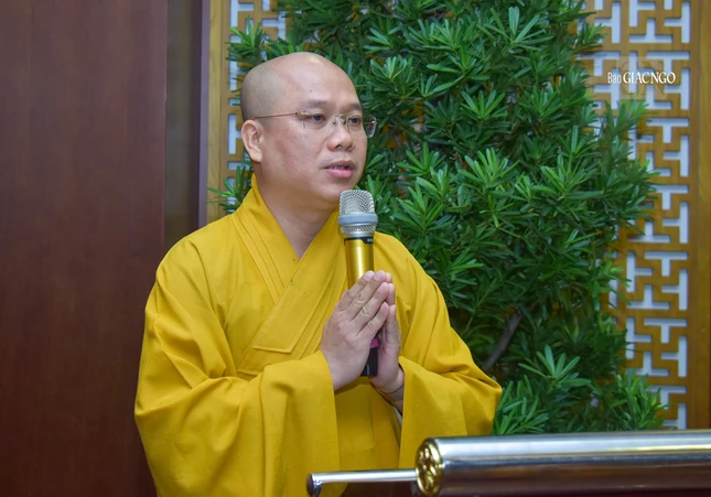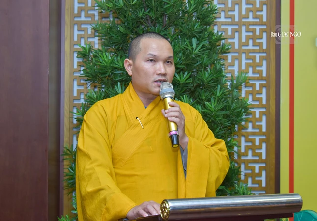 Thay mặt Thường trực Ban Kiểm soát, Ban Pháp chế, Hòa thượng Thích Hiển Đức phát biểu chào mừng chư tôn đức; nêu vai trò, trách nhiệm của 2 Ban trong việc góp phần ổn định và phát triển của GHPGVN TP.HCM.