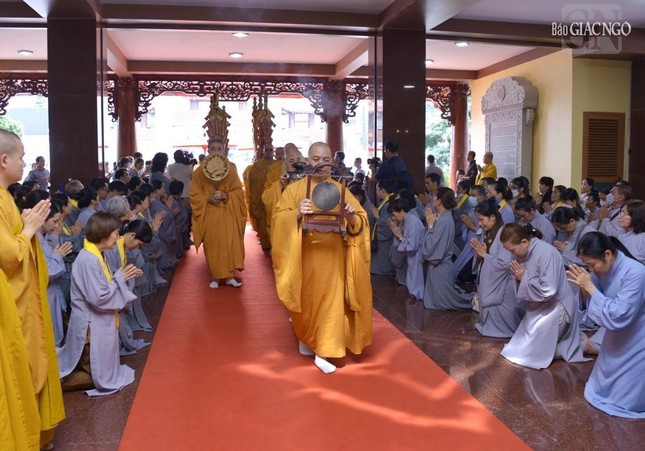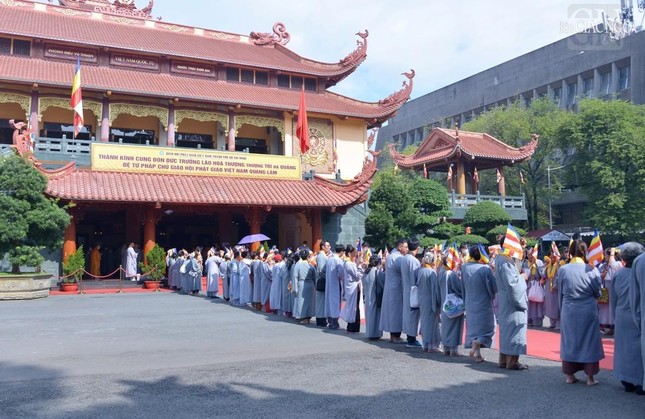 Cung đón Trưởng lão Hòa thượng Thích Trí Quảng, Đệ tứ Pháp chủ GHPGVN - Ảnh: Bảo Toàn/BGN