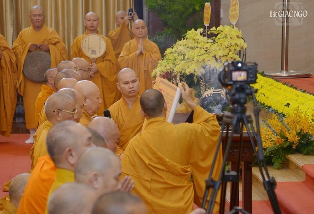 Về đến Việt Nam Quốc Tự, Ban Nghi lễ cung thỉnh ngài an tọa chính tòa tại hội trường lớn. Hòa thượng Thích Lệ Trang tác bạch duyên sự, cung tuyên chúc từ, điểm lại hành trạng của Đệ tứ Pháp chủ GHPGVN, bày tỏ lòng tôn kính đối với vị lãnh đạo Giáo hội, ở trong ngôi vị tối cao của Hội đồng Chứng minh vừa suy tôn tại Hà Nội trong Đại hội đại biểu Phật giáo toàn quốc lần thứ IX, ngày 29-11-2022.