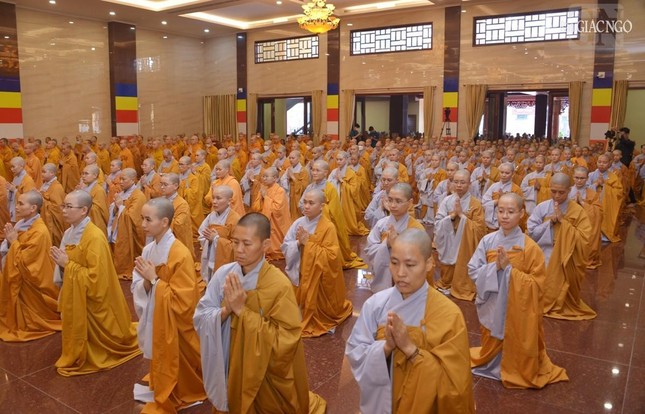 Chư Tăng Ni thành kính đón nhận lời khai thị của Đức Pháp chủ