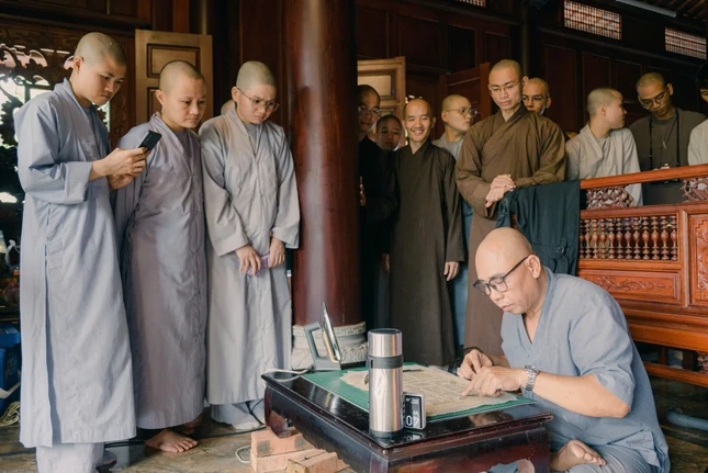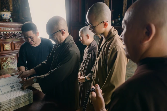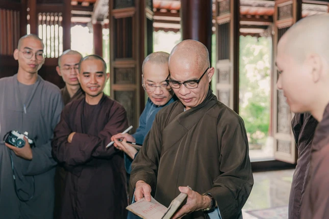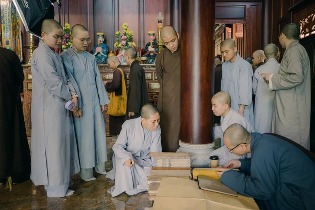 Bên cạnh việc lắng nghe và tiếp cận tư liệu, Tăng Ni sinh còn được trực tiếp quan sát quy trình số hóa tư liệu Hán Nôm do đoàn sưu khảo thực hiện. Những thao tác kỹ thuật từ chụp ảnh, xử lý hình ảnh, bảo quản tư liệu,... đã giúp người học hình dung rõ hơn về con đường đưa di sản từ dạng vật thể truyền thống sang môi trường số hóa hiện đại nhằm mục đích bảo tồn, nghiên cứu.