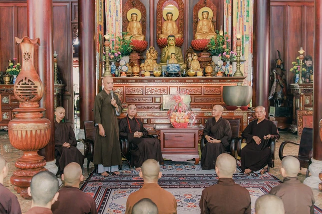 Buổi học diễn ra với sự chứng minh và đạo từ của Trưởng lão Hòa thượng Thích Quang Nhuận, Thành viên Hội đồng Chứng minh; Hòa thượng Thích Hải Ấn, Ủy viên Thường trực Hội đồng Trị sự, Viện trưởng Học viện Phật giáo VN tại Huế.