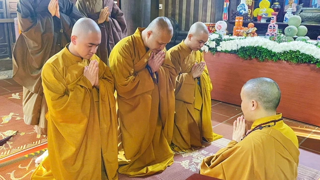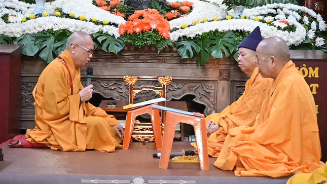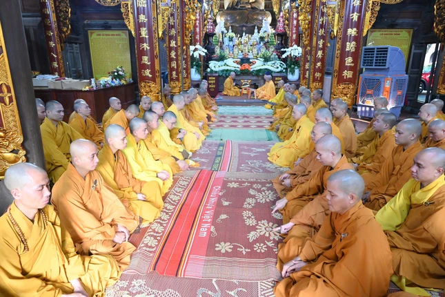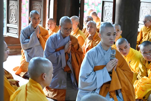 GNO - Sáng nay, 5-9, chư tôn đức Hội đồng Điều hành, Văn phòng và hơn 600 Tăng Ni trường hạ Sóc Thiên Vương - Học viện Phật giáo VN tại Hà Nội đã tác pháp Tự tứ, kết thúc khóa An cư kiết hạ Phật lịch 2569.