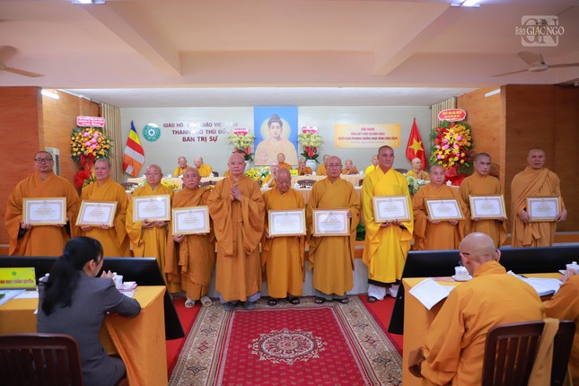 Dịp này, Ban Thường trực Ban Trị sự GHPGVN TP.HCM tặng Bằng tuyên dương công đức và Bằng công đức cho 2 tập thể, 22 cá nhân thuộc Ban Trị sự GHPGVN TP.Thủ Đức đã hoàn thành tốt Phật sự năm 2023.