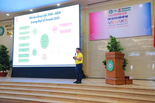Ngoài ra, Ban Tổ chức còn phổ biến thông tin hoạt động tình nguyện viên sẽ tháp tùng các đoàn đại biểu đi khảo sát thực tế ở Cơ sở II - Học viện Phật giáo VN tại TP.HCM (xã Lê Minh Xuân, H.Bình Chánh) - địa điểm chính diễn ra Đại lễ Vesak Liên Hiệp Quốc 2025.