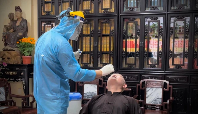 Trước đó, chiều nay 20-2, sau buổi làm việc giữa lãnh đạo các cơ quan chức năng với trụ trì, nhân viên y tế thuộc Trung tâm Y tế quận Tân Bình đã đến chùa Viên Giác lấy mẫu xét nghiệm Covid-19 đối với 32 người, gồm 8 vị Tăng đang tu học tại chùa và 24 cư sĩ làm công quả - Những người có mặt trong lễ Kỳ an hội diễn ra tối 19-2.