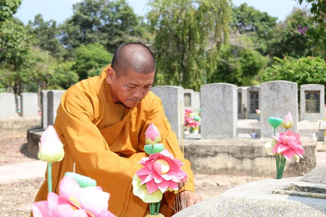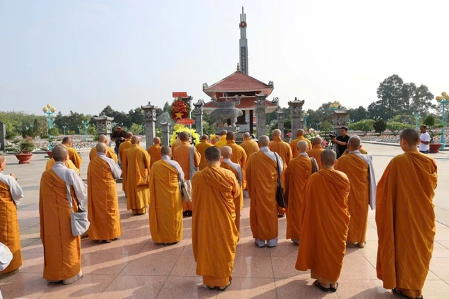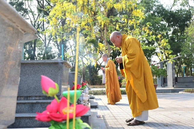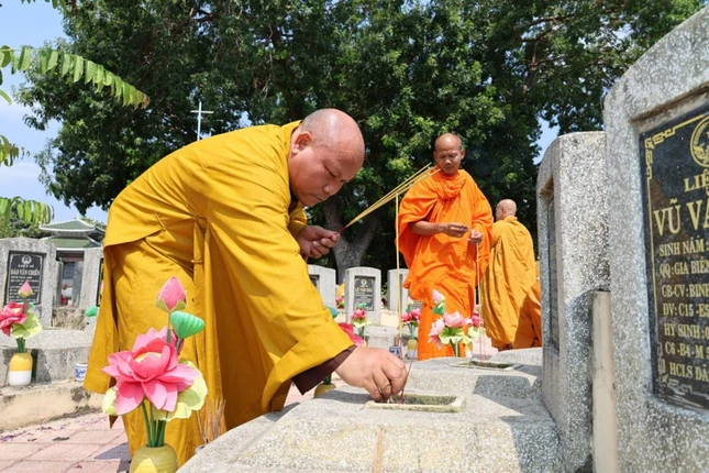 Chư tôn đức Tăng Ni và Phật tử đã thành kính dâng hoa, thắp hương và tụng niệm cầu siêu cho anh linh các anh hùng liệt sĩ. Nghi thức thể hiện lòng tri ân sâu sắc đối với những người con ưu tú đã hy sinh vì độc lập, tự do của Tổ quốc.