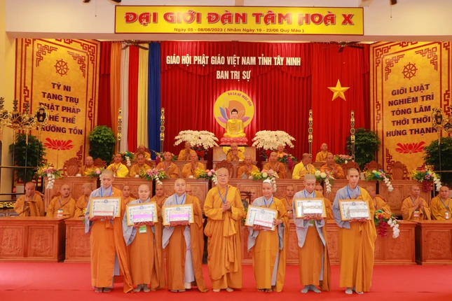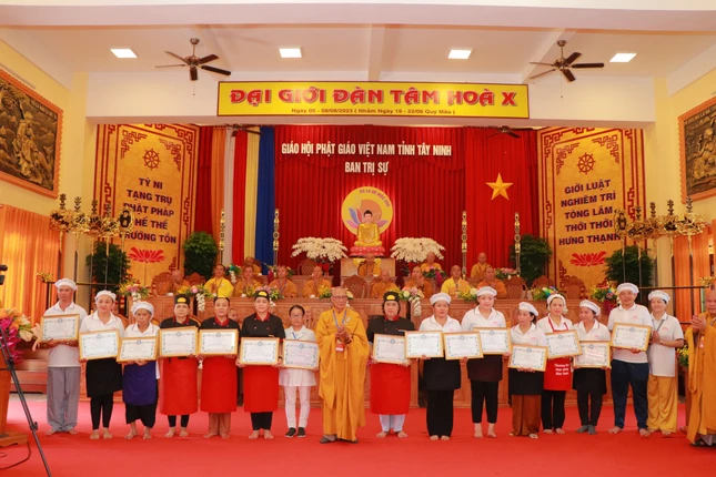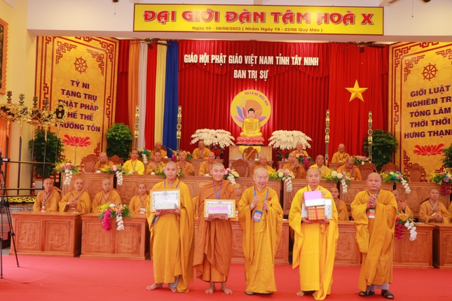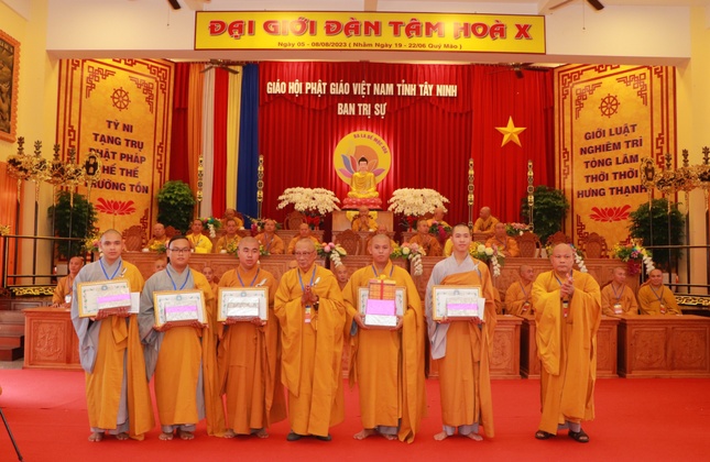 Dịp này, Ban Tổ chức cũng trao phần thưởng cho các giới tử Tăng, Ni xuất sắc trong phần thi tụng Luật Trường hàng; trao giấy tán dương công đức đến các Phật tử phát tâm hộ trì để Đại giới đàn thành công viên mãn.