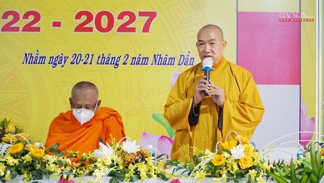 Đại diện Ban Trị sự GHPGVN tỉnh khóa VI (2017-2022), Hòa thượng Thích Huệ Tâm tuyên bố mãn nhiệm.