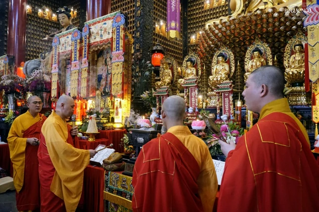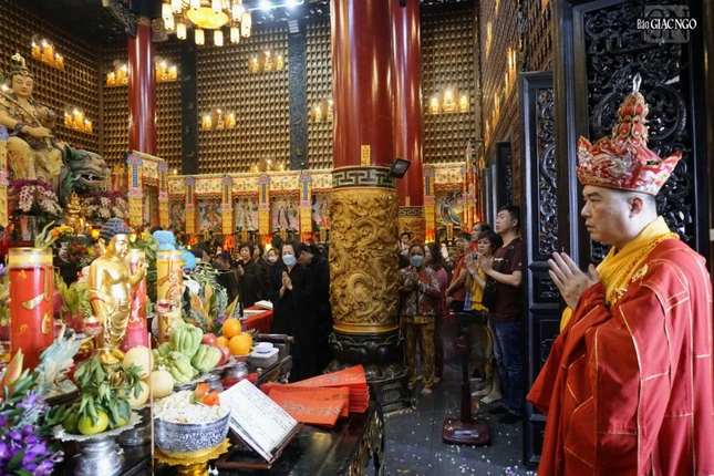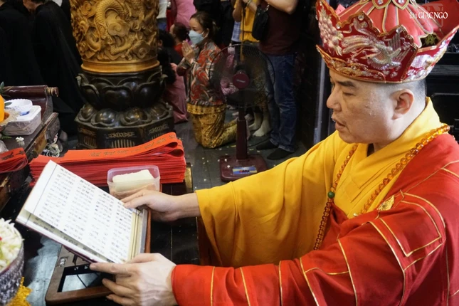 GNO - Từ lúc 7 giờ sáng ngày 14 Âm lịch, hàng trăm Phật tử người Hoa đã có mặt tại chùa Vạn Phật (Q.5) để chuẩn bị cho các thời kinh, kéo dài đến ngày Rằm tháng Giêng, để đón Tết Nguyên tiêu - truyền thống văn hóa lâu đời của cộng đồng người Hoa tại TP.HCM.