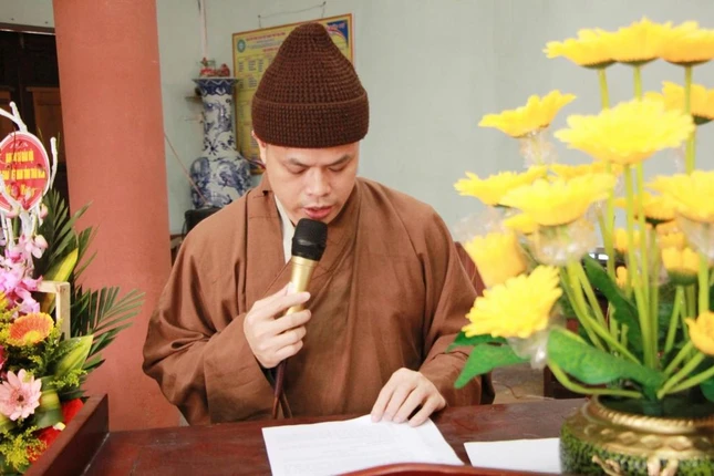 | Ni sư Thích Đàm Thoa - Phó Ban Trị sự GHPGVN tỉnh Thái Bình, Trưởng Phân ban Ni giới phát biểu |
