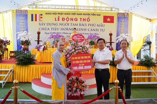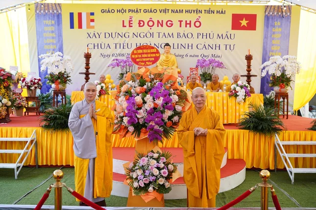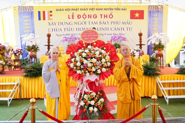 Đại diện chính quyền địa phương có ông Tô Quý Bôn, Phó Chủ tịch Thường trực HĐND H.Tiền Hải; ông Nguyễn Minh Hòa, Bí thư Đảng ủy TT.Tiền Hải; ông Cao Xuân Bàng, Chủ tịch UBND TT.Tiền Hải cùng đại diện chính quyền địa phương sở tại, đông đảo Phật tử về dự lễ.
