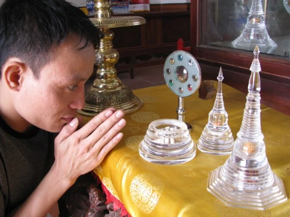 Chính vì thế, khi đặt chân vào tháp Xá lợi Phật tại chùa Viên Đình, chúng tôi bị choáng váng bởi vẻ dẹp lung linh, huyền ảo mà tất cả xá lợi hòa quyện với nhau.