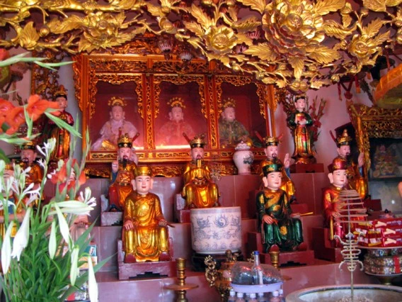 Hướng dẫn chúng tôi đi thăm chùa, Đại đức Thích Chơn Phương đã cho chúng tôi chiêm bái 7 pho tượng đất lớn với những nét hoa văn cực kỳ độc đáo, tinh xảo và kỳ lạ. Theo như những bô lão trong làng truyền tụng lại thì 7 pho tượng đất này còn nguyên sơ từ ngày dựng chùa và liệt vào danh sách một trong những pho tượng cổ xưa nhất Việt Nam.