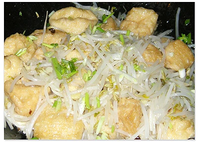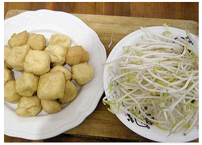 Món đậu xào giá đơn giản và tạo một bữa ăn nhẹ thanh đạm. Nguyên liệu gồm: 3 bìa đậu phụ, 200g giá đỗ, bột canh, hành xanh và thực hiện như sau: