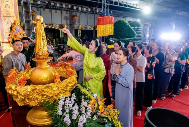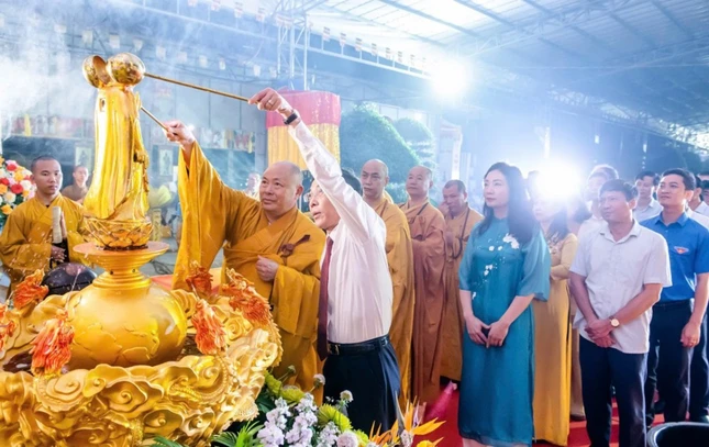 Sau phần nghi lễ chính thức, chư tôn đức cùng đại diện chính quyền thực hiện niêm hương, nghi thức Tắm Phật truyền thống.