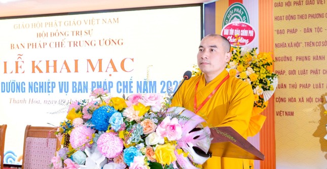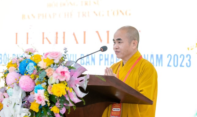 Hòa thượng Thích Huệ Thông, Phó Chủ tịch Hội đồng Trị sự, Trưởng ban Pháp chế T.Ư phát biểu khai mạc cho biết nhằm giúp thành viên Ban Pháp chế GHPGVN có trình độ, kỹ năng về nghiệp vụ chuyên môn pháp chế để tham mưu, góp ý, đề xuất lên lãnh đạo Giáo hội các cấp về lĩnh vực chuyên môn pháp chế. Được sự chấp thuận, cho phép của Ban Thường trực Hội đồng Trị sự GHPGVN, Ban Tôn giáo Chính phủ, Sở Nội vụ - Ban Tôn giáo TP.HCM, Sở Nội vụ - Ban Tôn giáo tỉnh Thanh Hóa, Ban Pháp chế T.Ư tổ chức khóa bồi dưỡng nghiệp vụ về pháp chế năm 2023 cho các thành viên Ban Pháp chế thuộc các cấp GHPGVN.