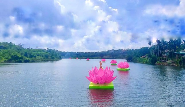 GNO - Sáng 3-4-Quý Mão (21-5-2023), chùa Phước Quang, X.Nhân Cơ, H.Đắk R'Lấp, tỉnh Đắk Nông đã hạ thủy 7 đóa sen hồng trên hồ Nhân Cơ để chuẩn bị cho các sự kiện kính mừng Phật đản Phật lịch 2567.