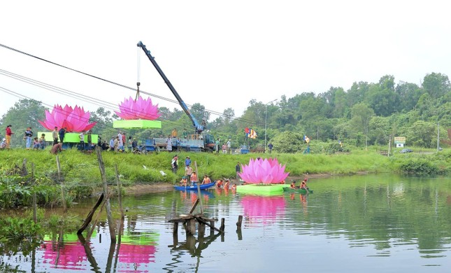 Một số hình ảnh lễ hạ thủy 7 đóa sen hồng trên hồ Nhân Cơ: