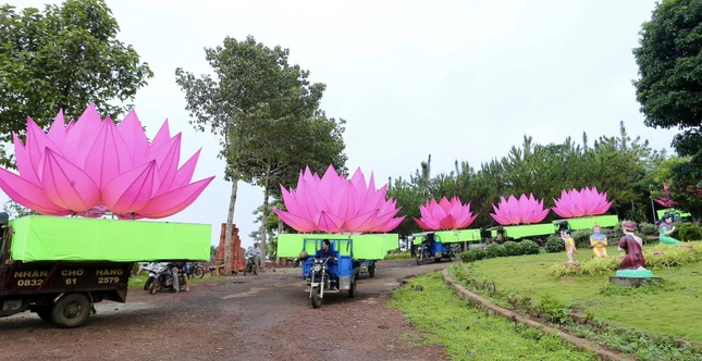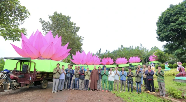 Hoa sen được chư tôn đức và Phật tử vận chuyển từ chùa Phước Quang đến hồ Nhân Cơ |